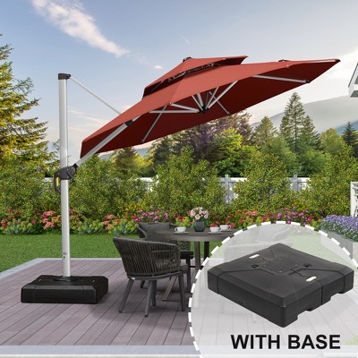 When summer season is near, break out your umbrellas so that you can beat the heat. At Target, you can choose from a wide selection of cantilever umbrellas that will fit your exact requirements. Take your pick from a variety of tilt types like crank, push-button, or push-up umbrellas. These heavy-duty patio umbrellas are great for your outdoor space and are often made of aluminum, are strong and come in different shapes so that you can pick the umbrella that offers the best shade for you. UV-resistant and fade-resistant, cantilever design umbrellas come with weighted bases and strong poles so they will not tip over on your patio. Browse through an extensive range of cantilever patio umbrellas to get ready for the summer!