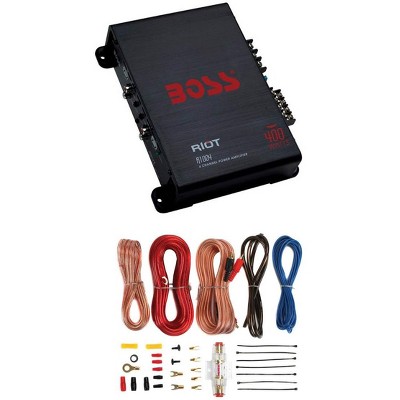 BOSS Audio Systems R1004 Riot 400W 4-Channel Class A/B 2 Ohm Stable Full Range Car Audio High Power Amplifier with 8 Gauge Amp Installation Wiring Kit