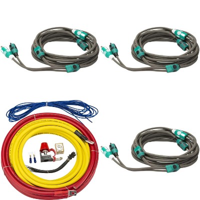 Kicker 47KMPK4 Marine 4awg Amp Power Kit & (3) 47KMI3 3 Meter RCA Cable
