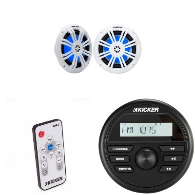 Kicker KMC2 Gauge Mount Marine Grade Receiver & 51KM604WL 6.5" White LED Speakers w/ 41KMLC Led Remote bundle