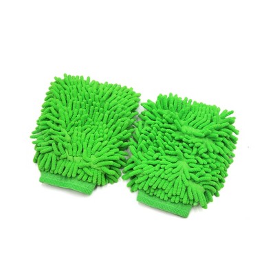 Unique Bargains Green Microfiber Chenille Washing Cleaning Glove Mitten for Car Body Home 2pcs