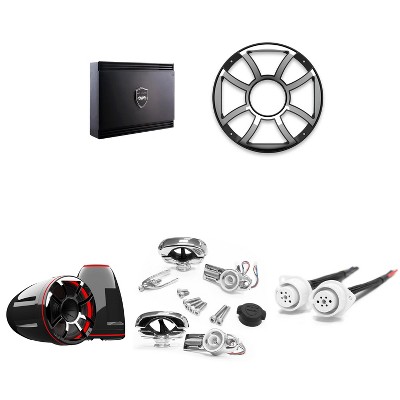 Kicker Premium Marine 8" 51MSC8 (2 Pair ) With 43KMTES8B (1 Pair) Black Enclosures Includes 48KXMA8004 Amp, UTV / Wake Boarding