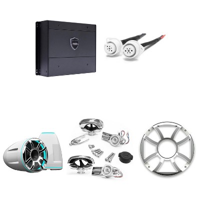 Kicker Premium Marine 8" 51MSC8 (2 Pair ) With 43KMTES8W (1 Pair) White Enclosures Includes 48KXMA8004 Amp, UTV / Wake Boarding
