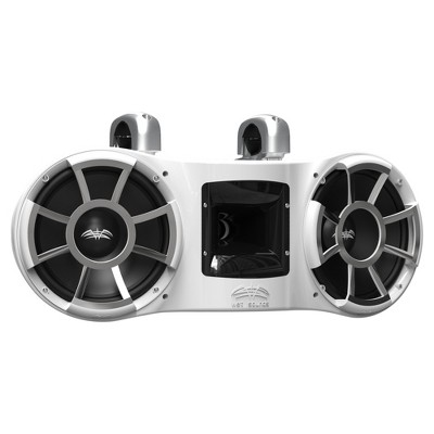 Wet Sounds REV 410 W-FC SA V2 - White REV410 - Revolution Series White Dual 10” Tower Speakers, Pair with Silver Aluminum Fixed Clamps