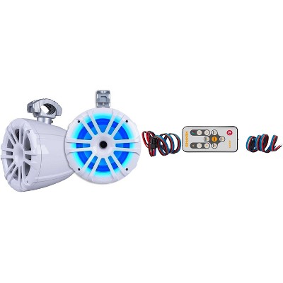 Memphis Audio 1 Pair of MXA82TW 8" Wake Tower Speakers, White With Swivel Mounting Clamps with LED Controller and Remote