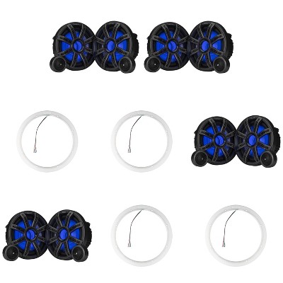 Kicker ( 4 Pair ) 51MSS84 8" Component LED Premium Marine Speakers & 47KLSR8 8-Inch LED Spacer Rings Bundle