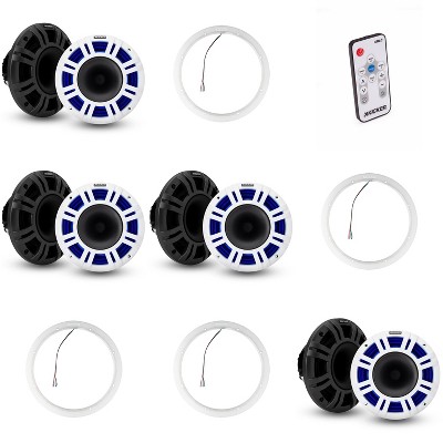 Kicker ( 4 Pair ) 45KM654L LED 6.5 Marine Coax with Charcoal and White Grills with a Pair of 50KLSR65 6.5 Led Lighted Speaker Ring