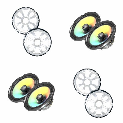 Kicker 45KM654L LED 6.5 Marine Coax with Charcoal and White Grills with a Pair of 50KLSR65 6.5 Led Lighted Speaker Ring