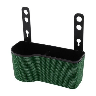 Unique Bargains Car Trash Can W/ Hook Hanging Front Rear Seats Rhinestone Trash Bin Green 1 Pc