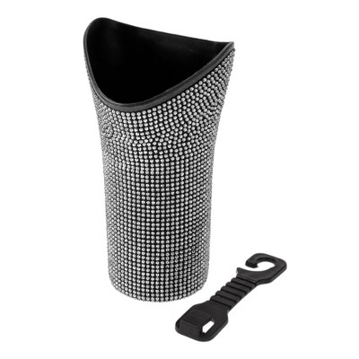 Unique Bargains Universal Car Trash Can Hanging Trash Bin Faux Leather Rhinestones 1 Pc Black Assorted Color