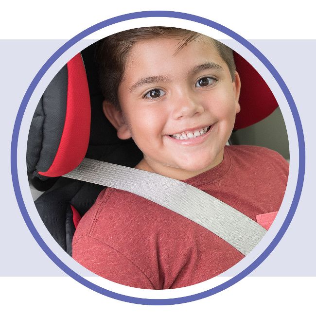 Once they outgrow the forward-facing car seat with a harness, it’s time to transition to a booster seat but still in the back seat of the vehicle.