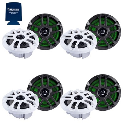 Memphis Audio LED Marine Speaker Pack: 4 Pairs of MXA60L 6.5" Marine Grade, Included Black and White Grills With RGB LED