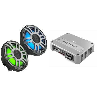 Hertz 1 Pair HMX 7.7 S-LD-G – 7.7" Hi-End LED Marine Coaxial Speaker, with Venezia Compact V4C Marine Amplifier