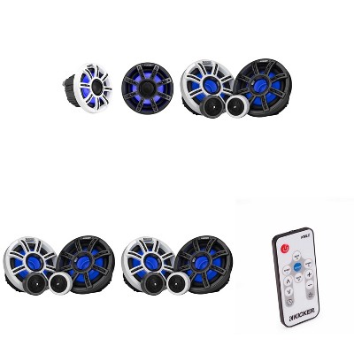 51MSS65Kicker 51MSS654 - MSS 6.5-Inch Premium Marine 4-Ohm LED Component System, (4)Pairs & 41KMLC led remote