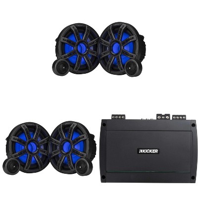 Kicker Marine KPX300.4 Powersports Amp & 6.5", 6x9" HLCD Marine LED Speakers (Includes LED Remote )