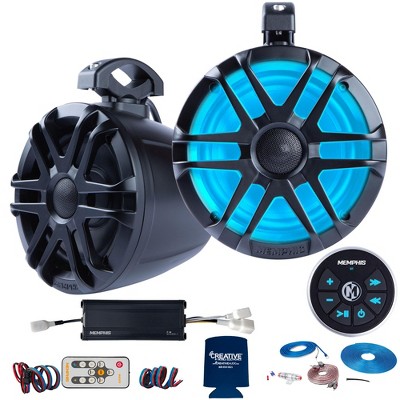 Memphis Audio MM84TB 8" Black Tower Array Speakers with Outdoor Covers and MM600.2V 2-Channel Marine Amplifier