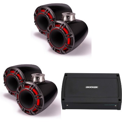 Kicker Marine KPX300.4 Powersports Amp & 6.5" Marine Speakers (4 Ohm )