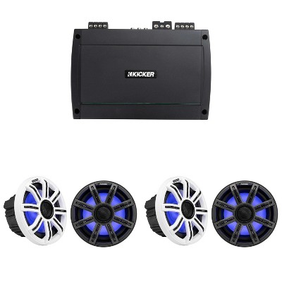 Kicker Marine KPX300.4 Powersports Amp & (2) 6.5" HLCD Marine LED Speakers