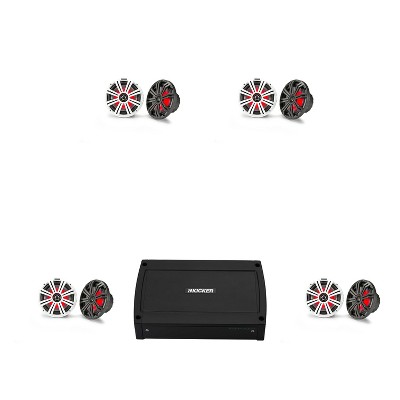 Kicker Marine 4 Ch Amp & (4 pair ) 8" LED Coaxial Speaker Audio Upgrade ( 48KXMA500.4, 45KM84L )