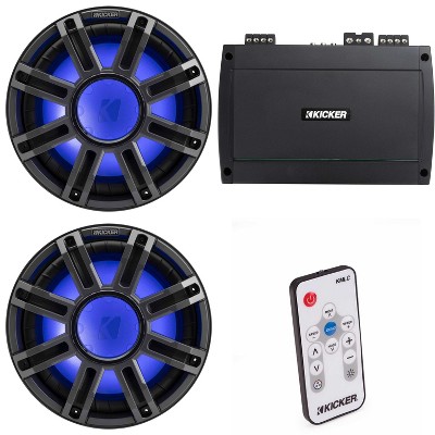Kicker (2) 51MWE124 - MWE 12-Inch Premium Marine Subwoofer (Enclosure) 4-ohm & 48KXMA9005 Marine Amp Bundle ( Includes LED Remote )
