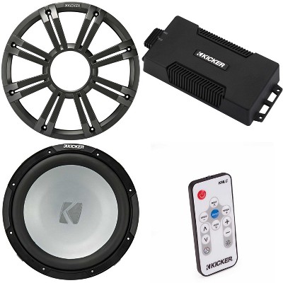 Kicker Marine KPX500.1 Powersports Amp & (2) 12" Free Air 4 Ohm ( Charcoal Grill ) Subwoofer Audio Upgrade