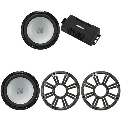 Kicker (2) 51MWE124 - MWE 12-Inch Premium Marine Subwoofer (Enclosure) 4-ohm & 48KXMA9005 Marine Amp Bundle