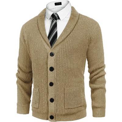 Unique Bargains Men's Shawl Collar Contrast Color Knit Cardigan
