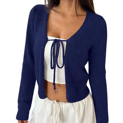 Coolmee Women's Tie Front Hollow Out Cover Up Summer Boho Crochet Knit Cardigan Crop Tops