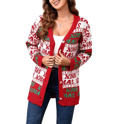 Coolmee Fall Sweater Cardigan for Women Long Sleeve Holiday Graphic Outerwear Button Down Open Front Cardigan Coat