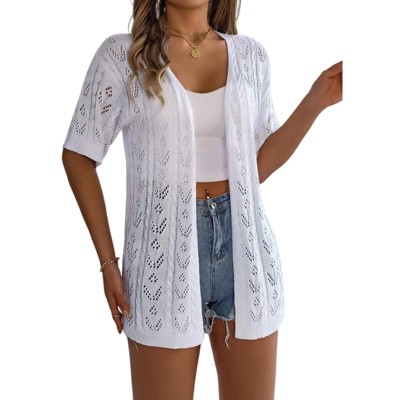 Clearlove Spring Cardigan for Women 2026 Pointelle Knit Sweater Short Sleeve Open Front Cardigan Lightweight Hollow Out Cardigan