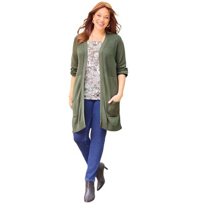 Woman Within Open Front Pointelle Cardigan Sweater
