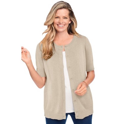 Woman Within Perfect Elbow-Length Sleeve Cardigan Sweater
