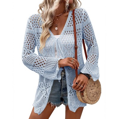Women's Plus Size Cardigan Crochet Long Sleeve Summer Tie Front Cardigans