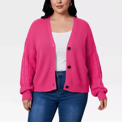 Womens Plus Size Cardigan Long Sleeve Cable Knit Sweater Front Button Down Rib Knitted Sweaters Above Hip Knit Shrugs Fall Cardigans