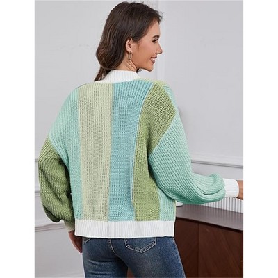 Clearlove Women's Colorblock Ribbed Knit Cropped Cardigan Long Sleeve Open Front Button Up Lightweight Layering Piece