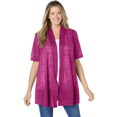 Plus Size Open Front Knit Cardigan 3/4 Sleeve Lightweight Breathable Casual Sweater Cardigan