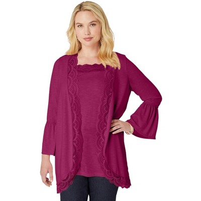 Roaman's Plus Size Scallop Trim Crochet Cardigan Sweater