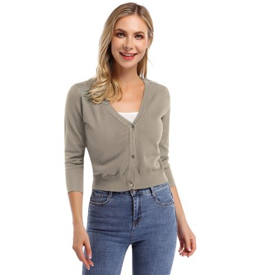 Clearlove Women's Cropped Bolero Cardigan – 3/4 Sleeve V-Neck Basic Classic Casual Button Down Knit Soft Sweater Top