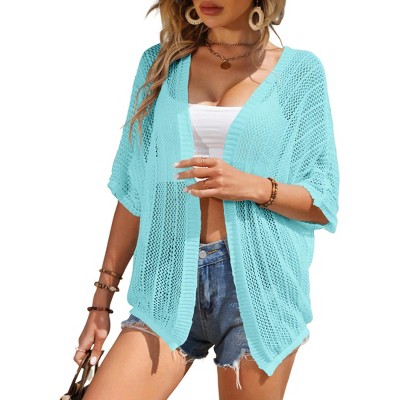 Womens Summer Lightweight Crochet Cardigan Long Sleeve Open Front Beach Swimwear Cover Up