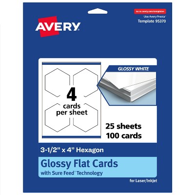 Avery Printable Hexagon Flat Cards, Sure Feed Technology, 3-1/2" x 4", Glossy White Cardstock, Print-to-The-Edge, Laser/Inkjet Printable, 100 Total
