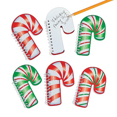 Fun Express 5" x 3" Red & Green Candy Cane-Shaped Spiral Paper Notepads - 24 Pc.