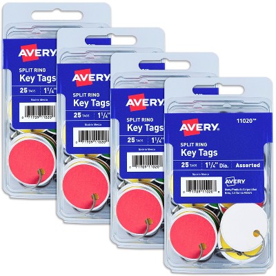 Avery Metal Rim Key Tags with String, Assorted Colors, 25 Tags Per Pack, 4 Packs, 100 Total (11020)