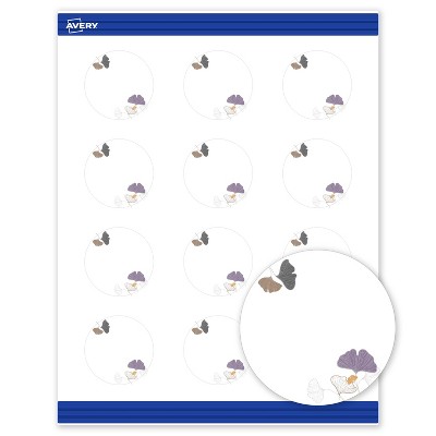 Avery Round Business Cards, Floral Design, 2" Diameter, 120ct, Matte, Silver Metallic with Gingko Leaves