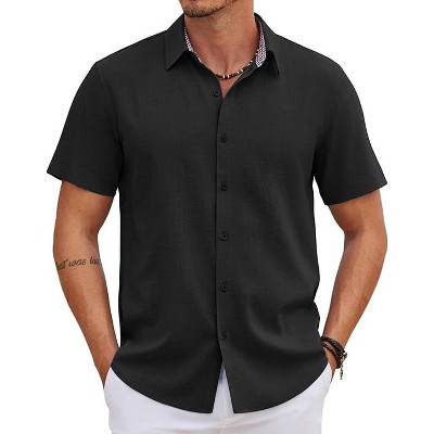 - mens button down shirts black