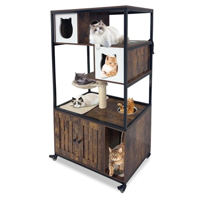 - garvee cat litter box enclosure with shelves and doors,wood sturdy hidden litter box furniture,indoor cat house furniture for most of litter box,litter box cabinet,walnut color