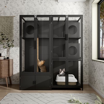 Skyzone 3-Tier Outdoor/Indoor Cat Shelter with 5 Doors, Asphalt Eave, Jump Platforms & Windows -