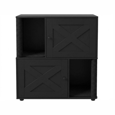 - garvee cat litter box enclosure with shelves and doors,wood sturdy hidden litter box furniture,indoor cat house furniture for most of litter box,litter box cabinet,walnut color