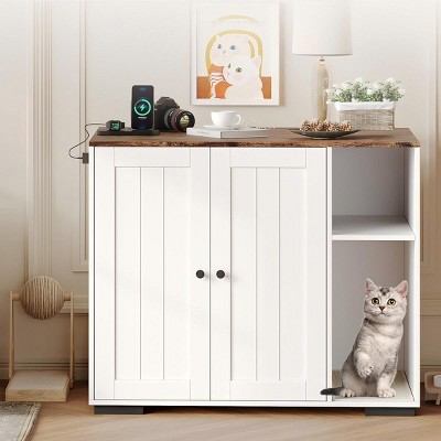 - garvee cat litter box enclosure with shelves and doors,wood sturdy hidden litter box furniture,indoor cat house furniture for most of litter box,litter box cabinet,walnut color