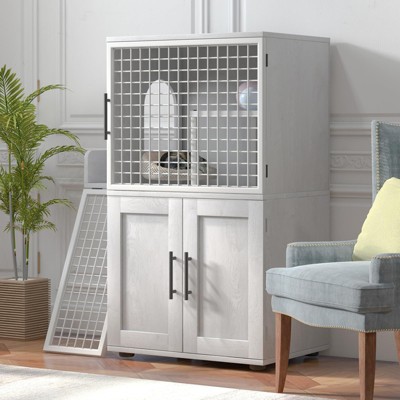- garvee cat litter box enclosure with shelves and doors,wood sturdy hidden litter box furniture,indoor cat house furniture for most of litter box,litter box cabinet,walnut color