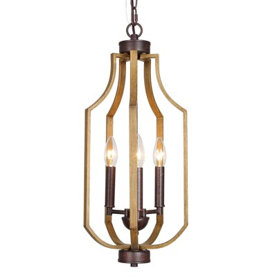 LNC Quaint 3-Lights Farmhouse Lantern  Mini Chandelier,Brown/Gray,9in/12.5in